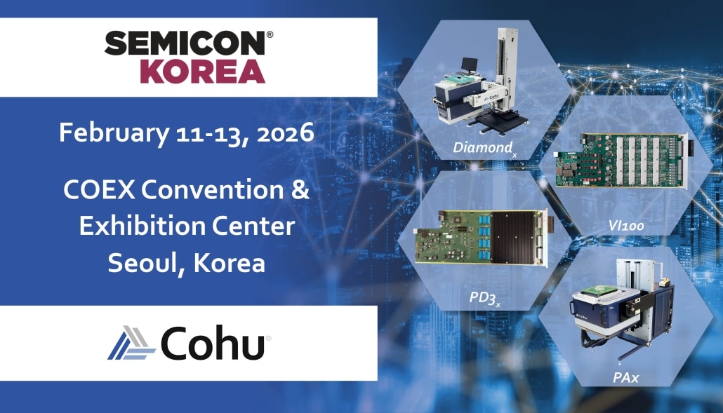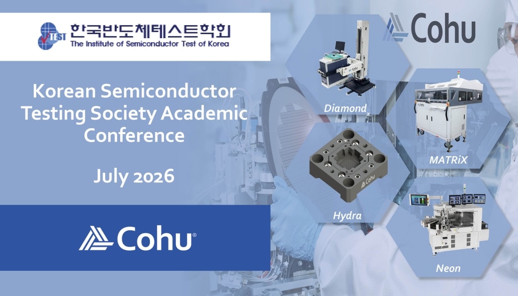 Cohu is proud to sponsor and participate in global semiconductor test and inspection & metrology industry shows and events, delivering technical papers and showcasing our product portfolio.