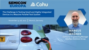 The triumph of electronic components started in the 1950s with the introduction of semiconductor transistors. Since this time the content of electronics has risen significantly. Innovations in the semiconductor industry are supporting the megatrends like mobility car electrification including ADAS-systems, sensors, connectivity, and advanced security. In this presentation, Markus Wagner describes the development of a test contactor for singulated, small WLCSP devices in massive parallelism test, supporting more than 200 contact sites and how different aspects address the challenges of reliable and cost-efficient device testing. This paper was presented at Semicon Europa 2022.