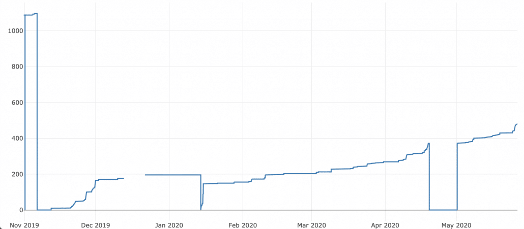 Figure 1: Raw surge counts reported by a chiller. Should be monotonically increasing. Bad data leads to false alarm.