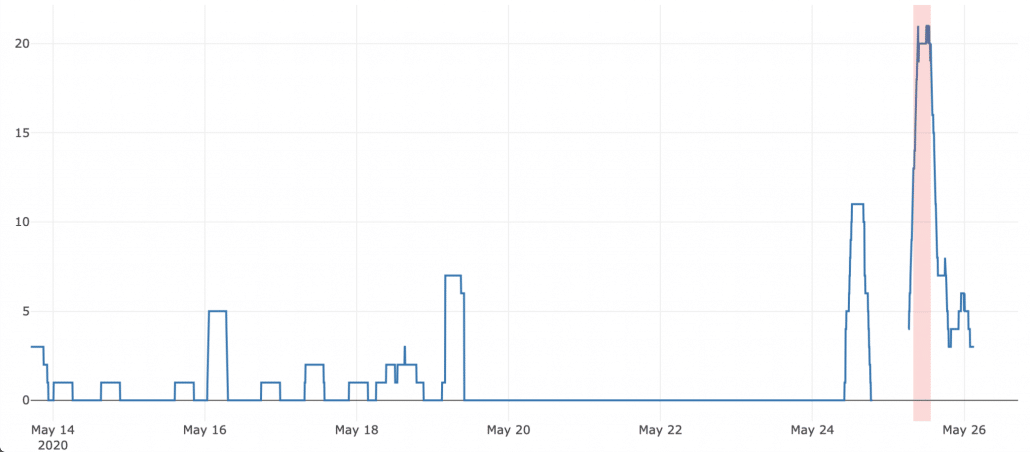 Figure 3: Surges over six hours, with dynamic threshold unique to each chiller. Finally, an alert rule that generates the right amount of alerts across all chillers.